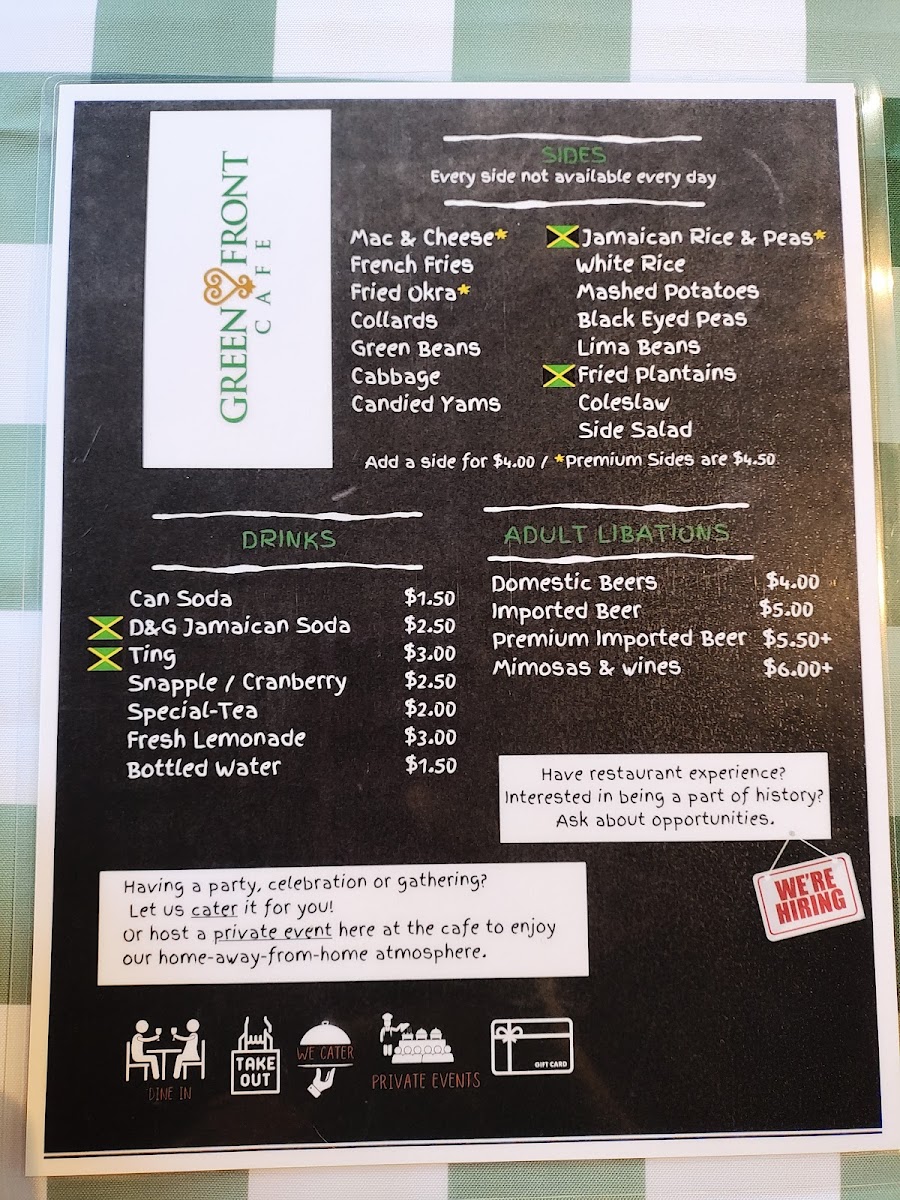 For those seeking a taste beyond the everyday, Green Front Cafe offers special catering services, including a unique package titled A Taste Of The Green Front. Whether you’re hosting a private event or planning a family gathering, the mac and cheese and candied yams promise to evoke fond memories and warm hearts. The vibrant atmosphere, combined with a commitment to quality, creates an experience you won’t forget.